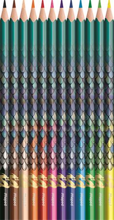 Színes ceruza készlet, háromszögletű, MAPED „Dragon sárkány”, 12 különböző szín